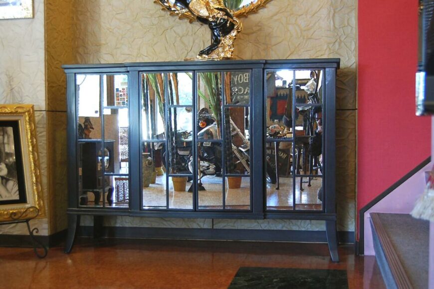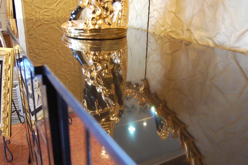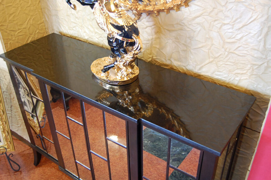 フリント/サイドにはミラー張り 天板には贅沢に天然大理石TOPとなって豪華な仕上がりです