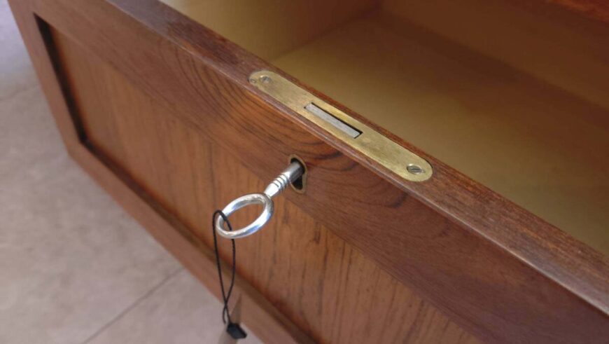 ハンドル: 鍵がハンドルとして機能するデザインです。